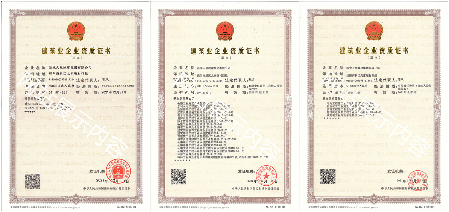 浩龍?zhí)煨浅墙瘓F有限公司,2007年成立于“李白故鄉(xiāng)、中國科技城”—四川省綿陽市,企業(yè)注冊資本金5.0008億元。公司共有27項建筑業(yè)企業(yè)資質,其中國家一級資質11項,二級資質10項,三級資質5項,特種資質不分等級1項,類別涵蓋建筑、市政、水利、機電、隧道、起重設備安裝等基礎及未來發(fā)展重點專業(yè)。公司下設三個辦事處,業(yè)務范圍輻射全國,在建項目三十余個,累計完成產值超11億元。公司是綿陽市建筑施工企業(yè)協會副會長單位、綿陽遂寧商會會長級單位、綿陽首批建筑業(yè)綠卡企業(yè),在綿陽本地企業(yè)中綜合實力名列前茅。
